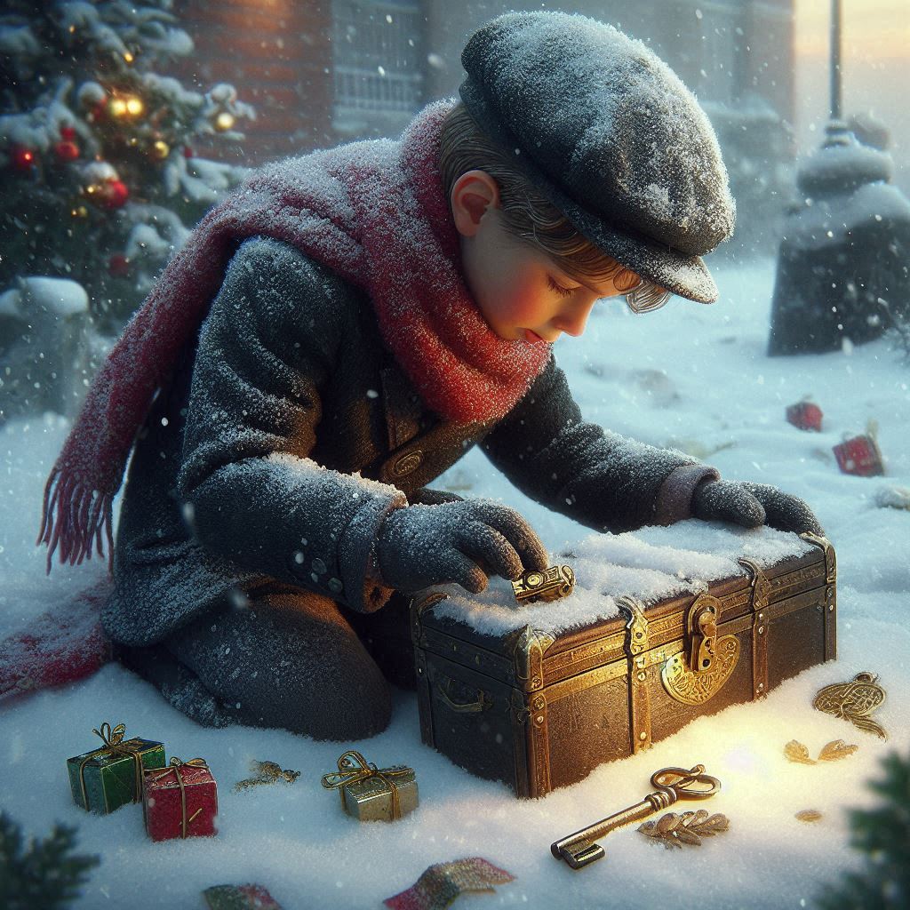 Da scharrte er den Schnee weg, und wie er so den Erdboden aufräumte, fand er einen kleinen goldenen Schlüssel.